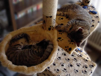 Mulde (ムルデ:鉢とか槽とか言う意味)と言われるハンモック状のものが猫の木についているんですけど、ひとつしかないんです。