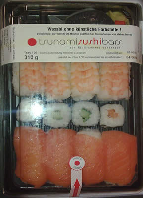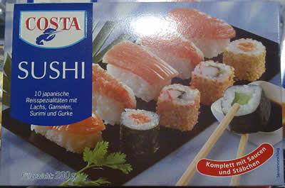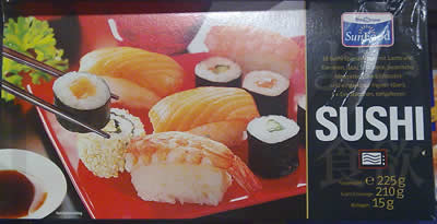 フランクフルトのスーパーカトーでは、寿司製造機械を使って自分で作っているので、新鮮で安いのがいいですよ。寿司用の材料を買いにくるドイツ人も増えましたー(お金はもらってないけど宣伝)