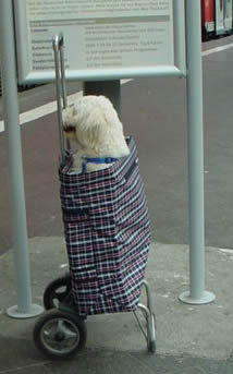 フランクフルトに着いたら、ショッピングカートに入った犬を見かけました(笑)