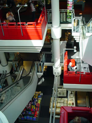 ここなら大概のものは手に入ります。中は真ん中が吹き抜けになっていて、あちこちに赤い読書コーナーが。みんなここに座って本を読んでます。これって、まだ買ってない本を読んでもいいってことなのかなあ?