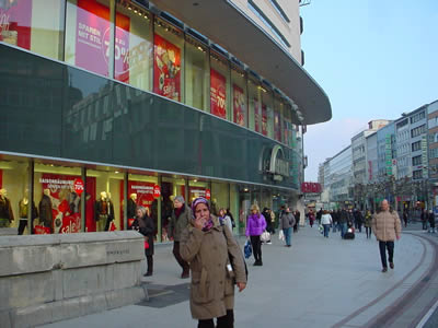 写真はフランクフルトの繁華街Zeil (ツァイル) の入口にある、Kaufhof (カウフホーフ デパート) から撮りました。