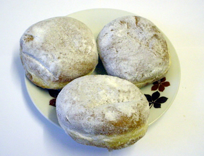 このお菓子はKrapfen という油で揚げるお菓子の一種で、Berliner, Krapfen, Kräppelnなど と言われています。