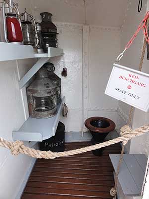 船首には水夫の使う桶やランプを置く部屋があり、中級階層の水夫の部屋もあります。