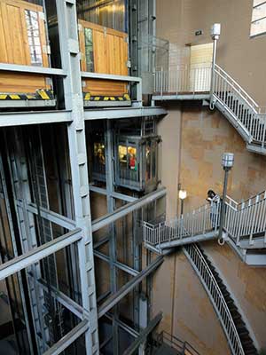 地下トンネルまでのエレベーターは23.50mの高さがあるそうです