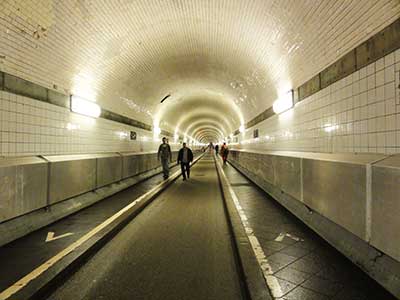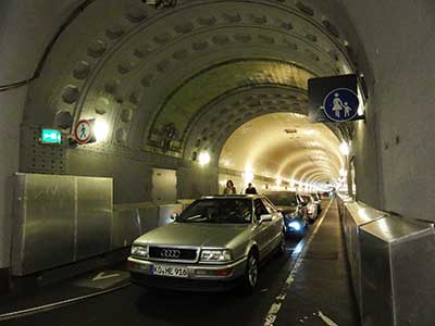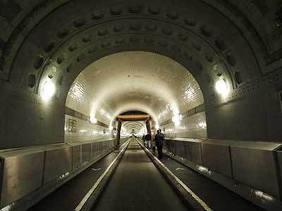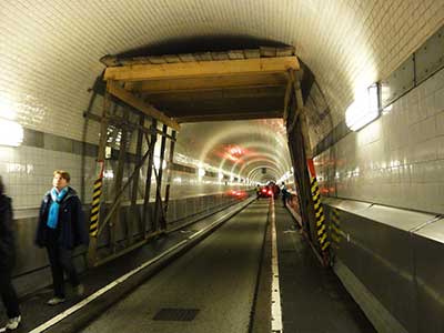車道だけではなく歩道もあって人間も徒歩でトンネルを歩けるので、ハンブルグの観光名所にもなっています。