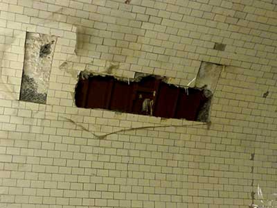おや?損傷はタイルだけのようですが、なんでここだけ壊れてるんだ