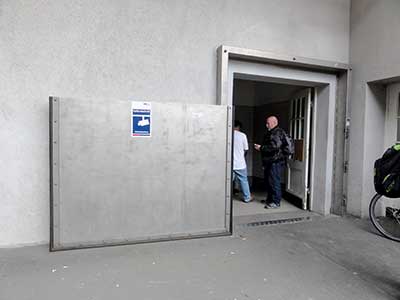 向こう側の入り口。このでかいドアは高波防止用です