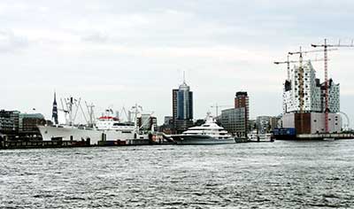 ほほう、ここからだとハンブルグ港がよく見えるね。