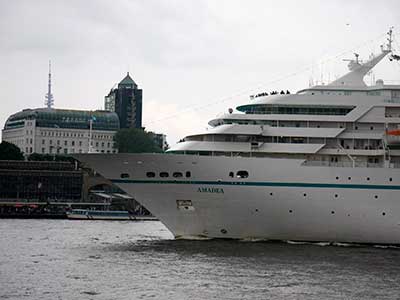おっ、客船が目の前を通過してきた