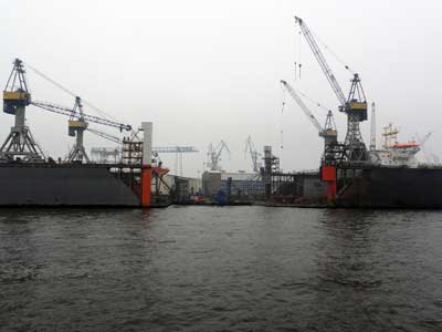 造船所で修理中の船
