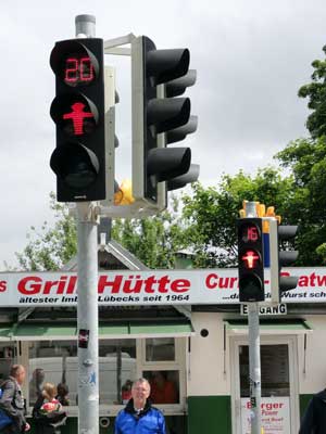ドイツでは珍しく、赤信号の残り時間付だよ。