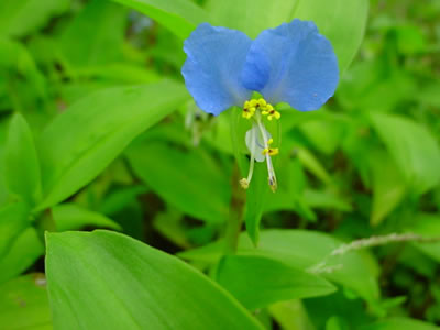 Tagblume (Commelina) は花が日中だけ開くから?どっかの庭から種を失敬。
