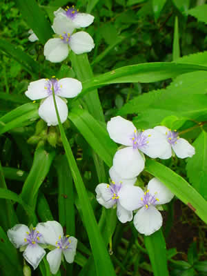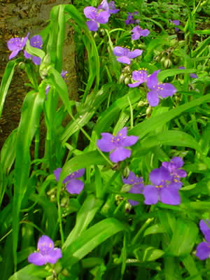 Dreimasterblume は3枚の花びらが名前の由来。大型のツユクサ。紫は勝手に、白は隣家から来た。