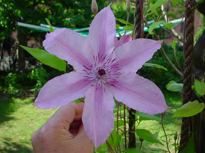 Clematis は鉄線のこと。手と花びらを比べてみてね。