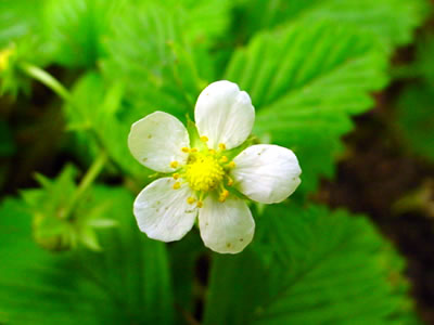 Erdbeere は「地面のベリー」となります。確かに地面を這ってる。世話してなかったから花が小さい(汗)