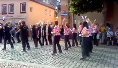 フランケン地区のTurngau (スポーツ協会)もこれに便乗して、お祭り期間にミルテンベルグでGauturnfest (地区スポーツ大会)を開催しまして、うちの町でFrauengymnastik (女性のための体操)に参加している私も、他の町の人たちと一緒に、団体体操パフォーマンスに参加してきました~