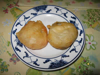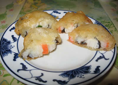 以前gebackene Sushi(揚げ寿司)を初めて見たレストランなんですけど、今回は鶏の空揚げが美味しくて満足でした。が、デザートのところにある揚げバナナや揚げパイナップルと一緒にあった正体不明の揚げ物をナイフで切ったら・・・・・・