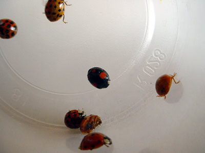 気温が春になった先週、窓にくっついていたテントウムシを、なんと11匹も発見したので、いそいそと写真を撮っておきましたw