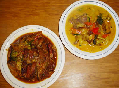 メインはビーフカレーのココナツミルク入りと、鴨料理でございます(ご飯つき)